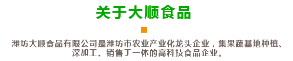 濰坊大順食品有限公司創建于2006年10月,位于中國出口蔬菜基地安丘市。地理位置優越,距離青島港100公里,是濰坊市農業產業化龍頭企業,2022年被授予國家級高新技術企業,2024年被授予省“專精特新中小企業”。公司通過了歐盟BRC質量體系認證,ISO9000認證,清真HALAL認證。公司占地面積26680㎡,員工190人,主要制造、銷售VF果蔬脆片、FD凍干果蔬、香菇素牛肉、黑蒜等產品,年產能6000噸,創匯1000萬美元!